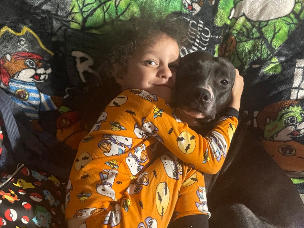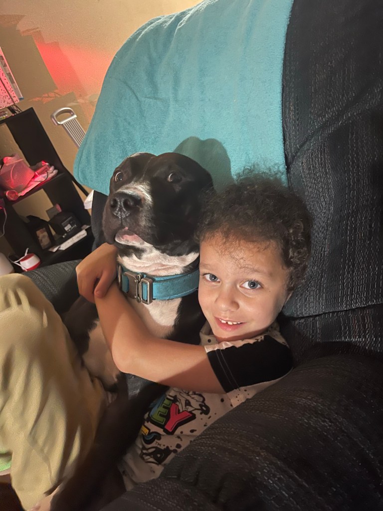 A few days ago my husband finally broke me down and we got a new dog. He’s mixed with pit but he is the sweetest thing ever. I live the bond he has with my son already. When my son falls asleep Loki tries to wake him up or he will lay down next to him. He seems like he’s annoyed by him when he’s awake but he misses him when he goes to sleep. It’s so cute! My son just loves dogs so much I think it’s good for him to have one of his own. We dog sat awhile back. We must have had these dogs for 2 weeks maybe 3, but son got so attached them he was upset when it was time for them to leave. So I knew eventually I would have to get him his on dog and honestly I’m glad I did.